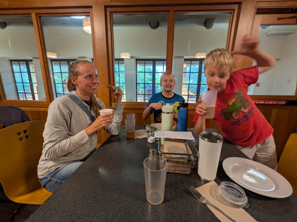 If that were all to the St. Mary’s City story, it would’ve been a lovely little anchorage. What made it our favorite was the college cafeteria, which we enjoyed twice in our 3-day stay. We taught the boys why the “freshman fifteen” exists with our five-course buffet meals (the last two of those being cookies and soft-serve ice cream). And who can forget the chocolate milk taps! They had a respectable salad bar, vegetarian options, and a good entrée. And $40 covered the whole family!