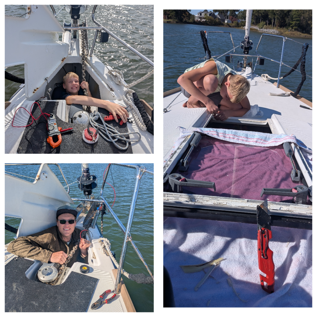 Over these few days, we tackled boat projects, like fixing the nav lights (the last 6 feet of wiring had rusted from saltwater exposure), re-sealing Rainier’s leaky roof hatch, and reinflating the dinghy.